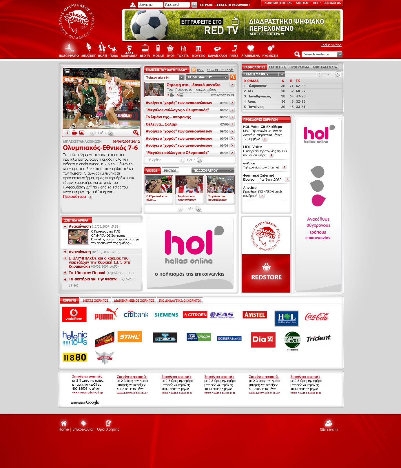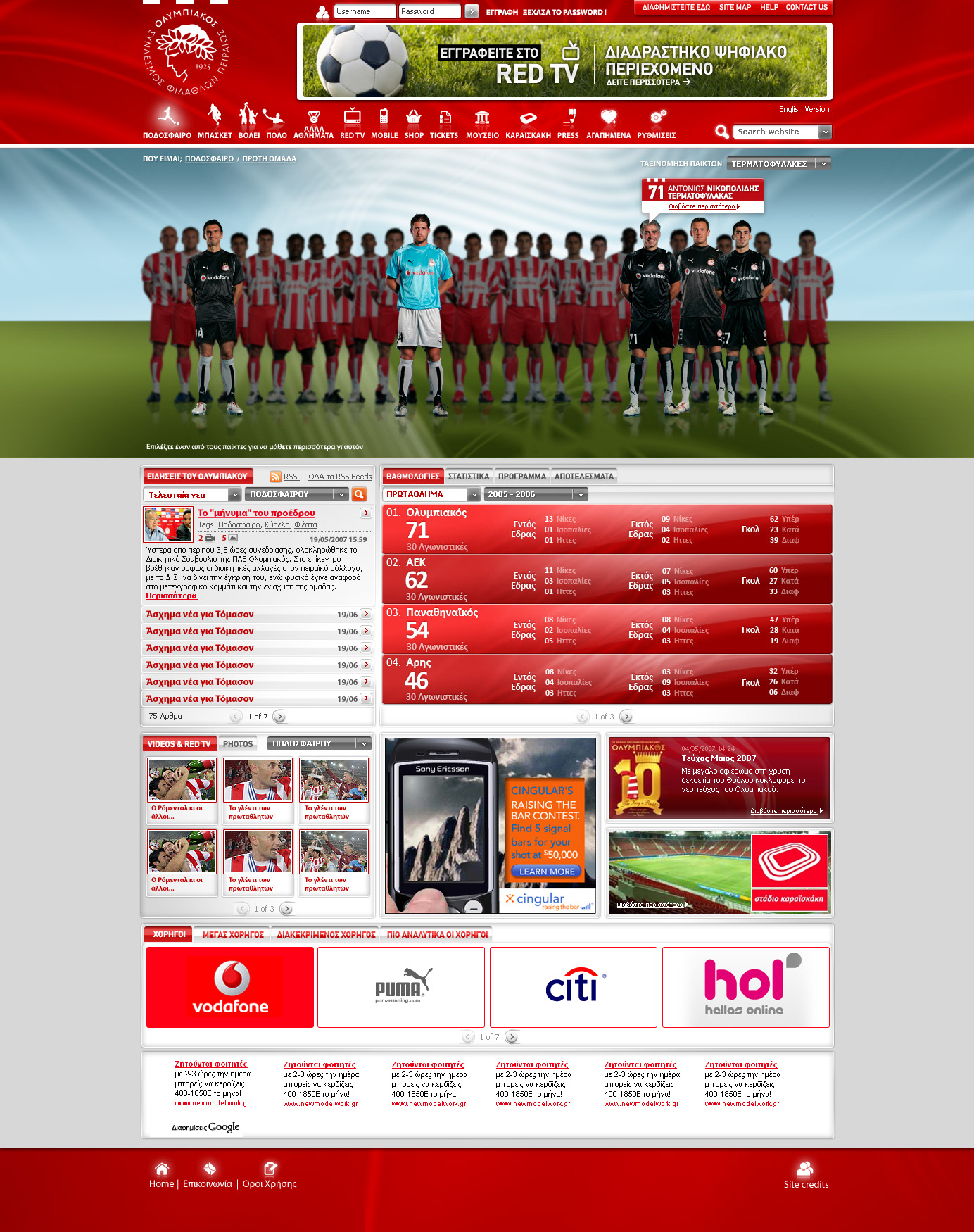 Design 7 production of the 2007 version of Olympiacos.org. Now offline.