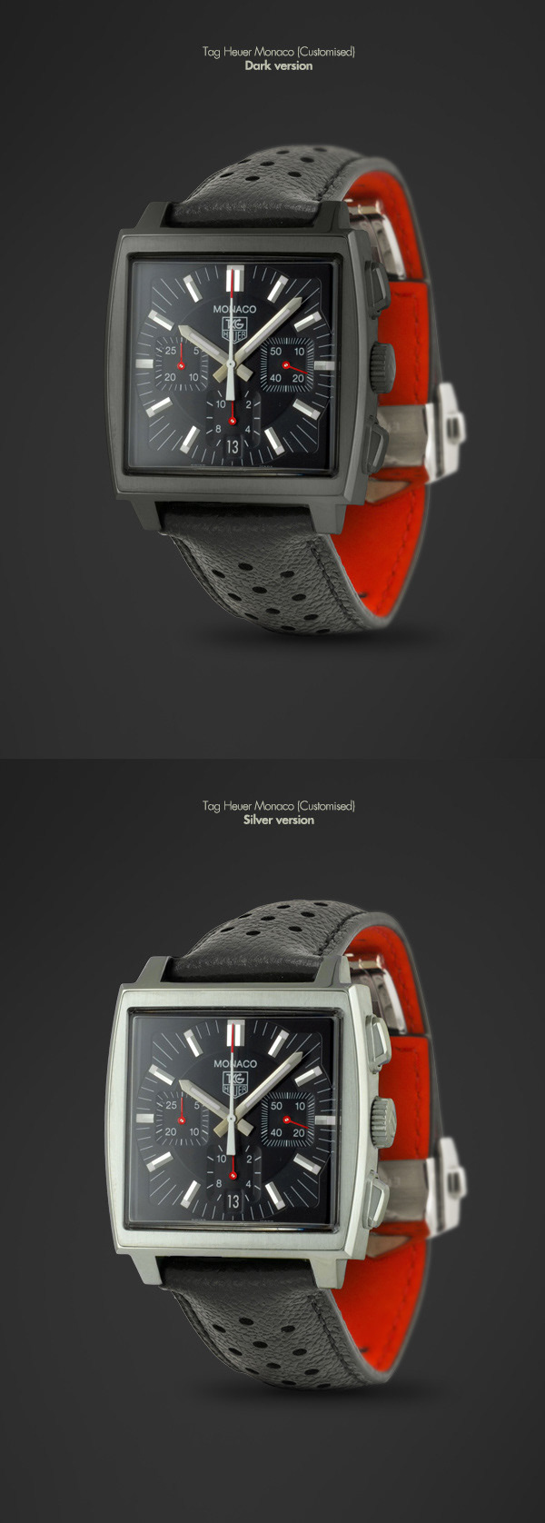 Just playing arround in photoshop on some color schemes for the Tag Heuer Monaco watch.