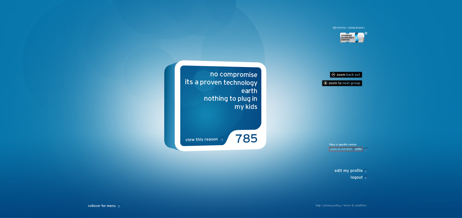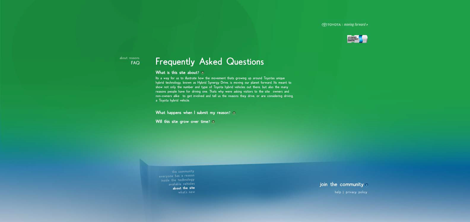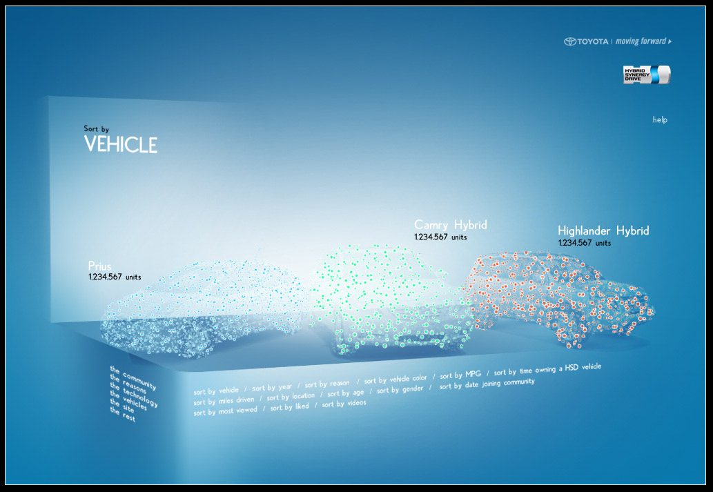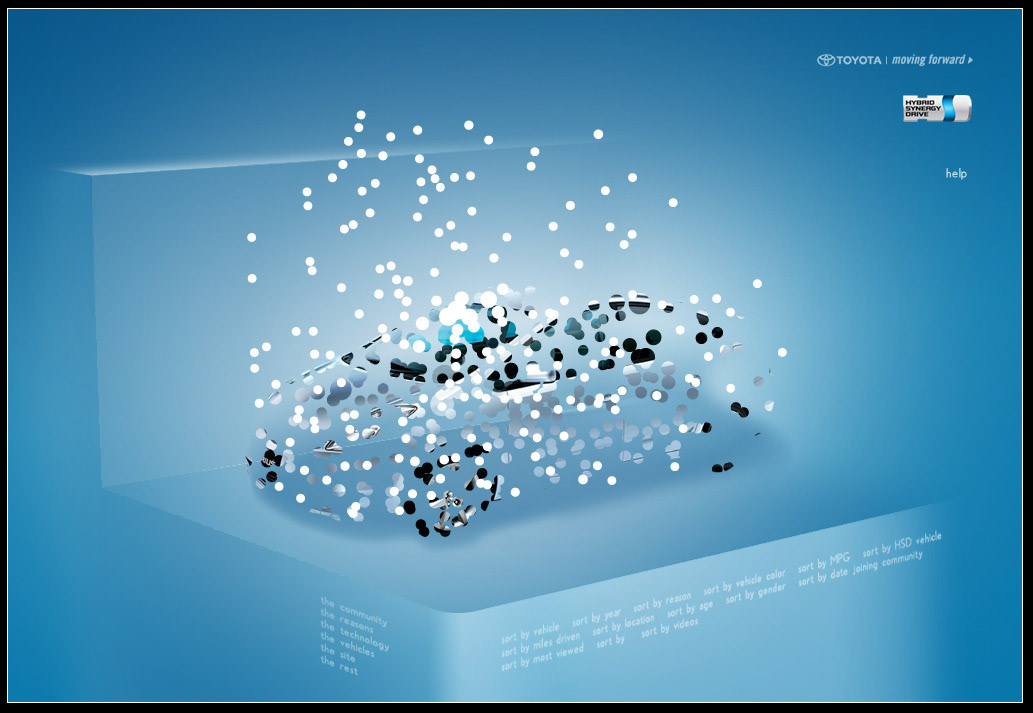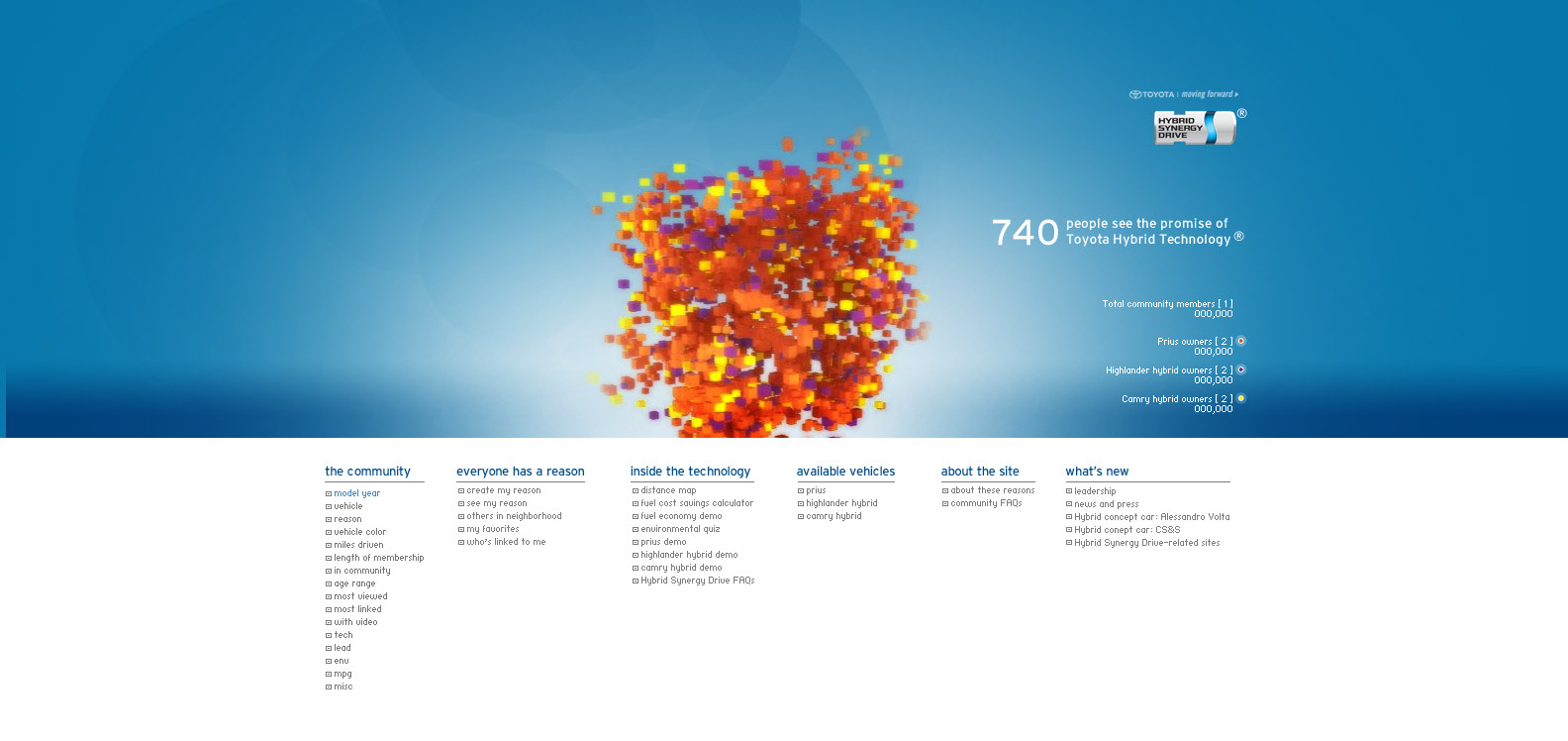 The Toyota.com/hsd 2006 flash microsite for HSD. My Reasons. Design / Art Direction and flash production.