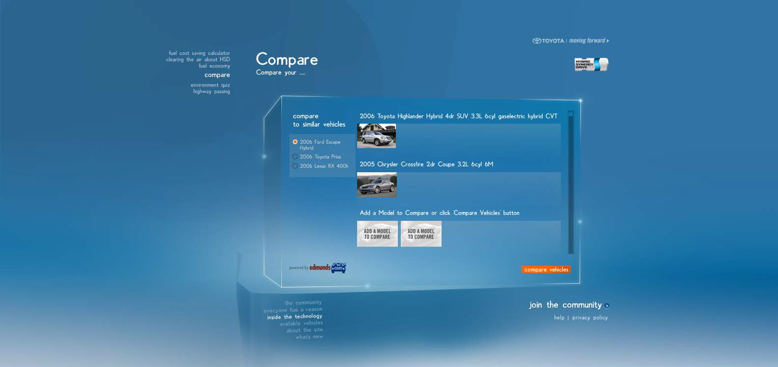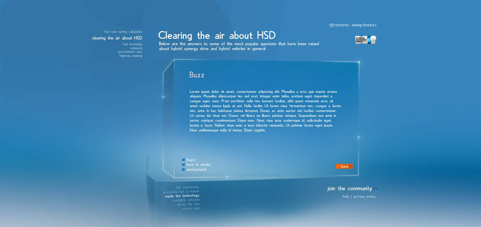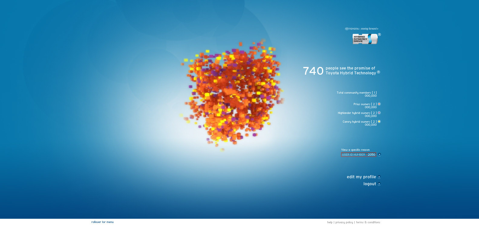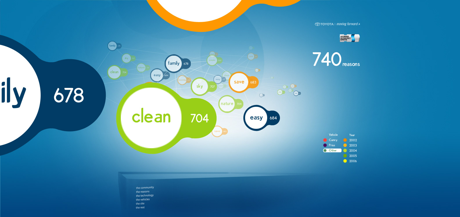 The Toyota.com/hsd 2006 flash microsite for HSD. My Reasons. Design / Art Direction and flash production.