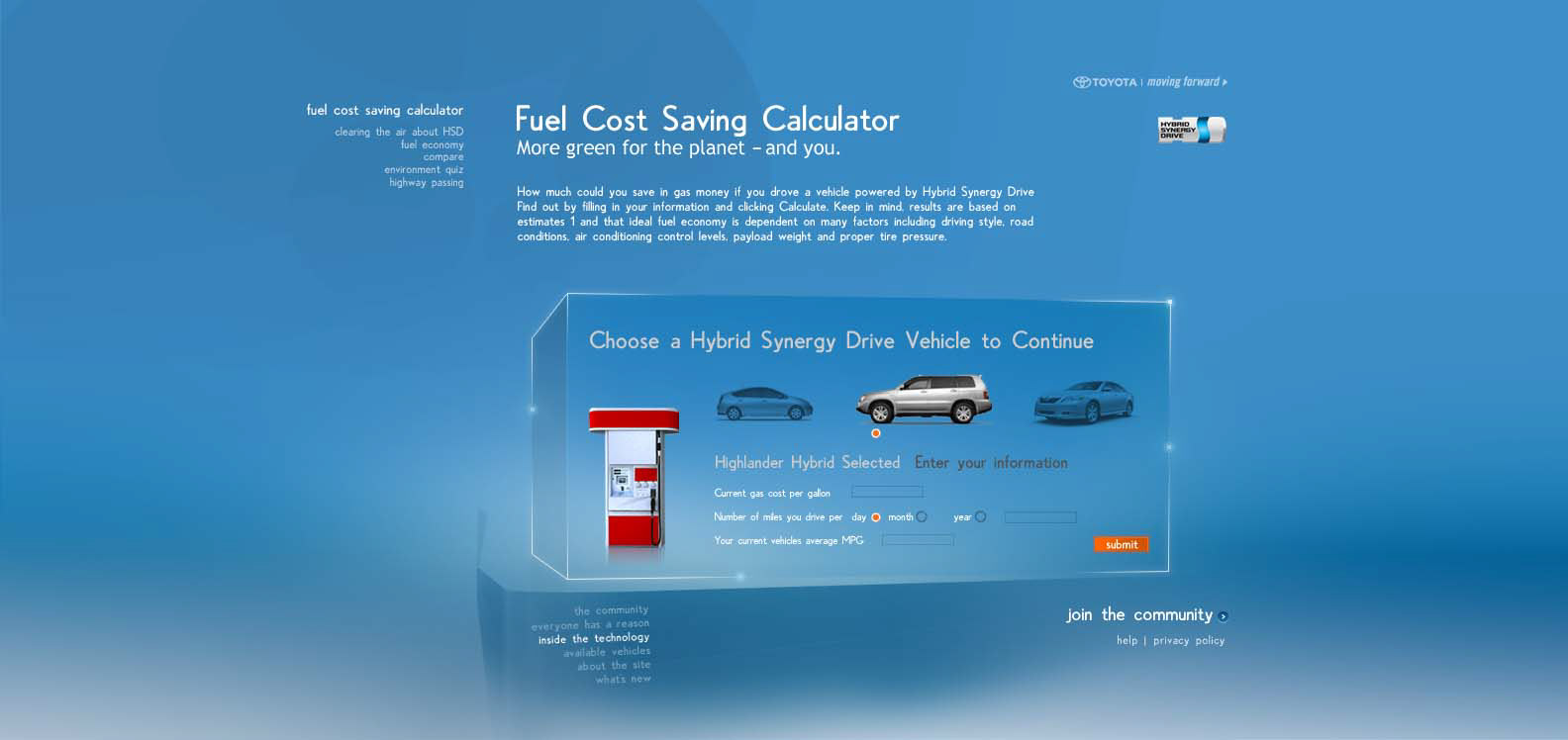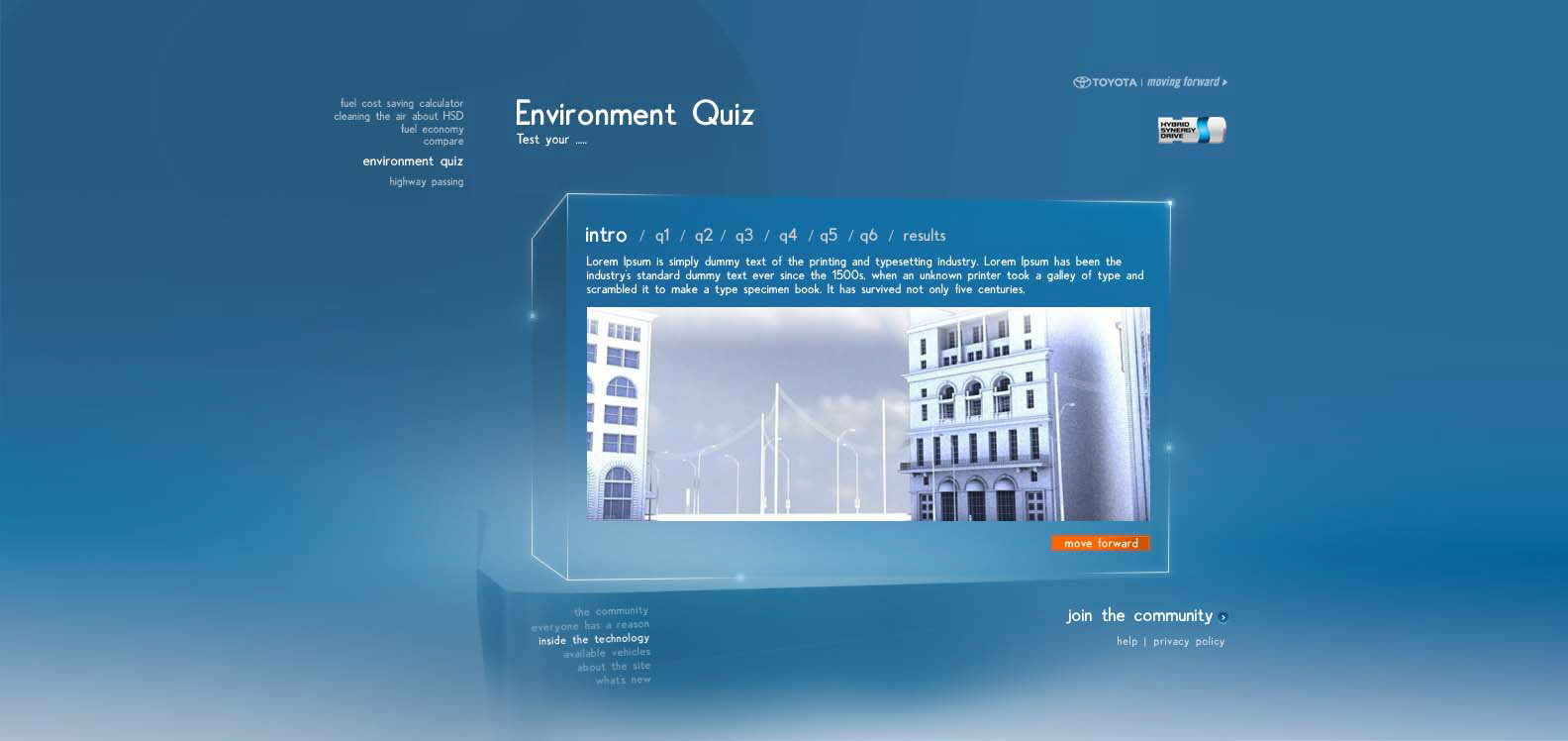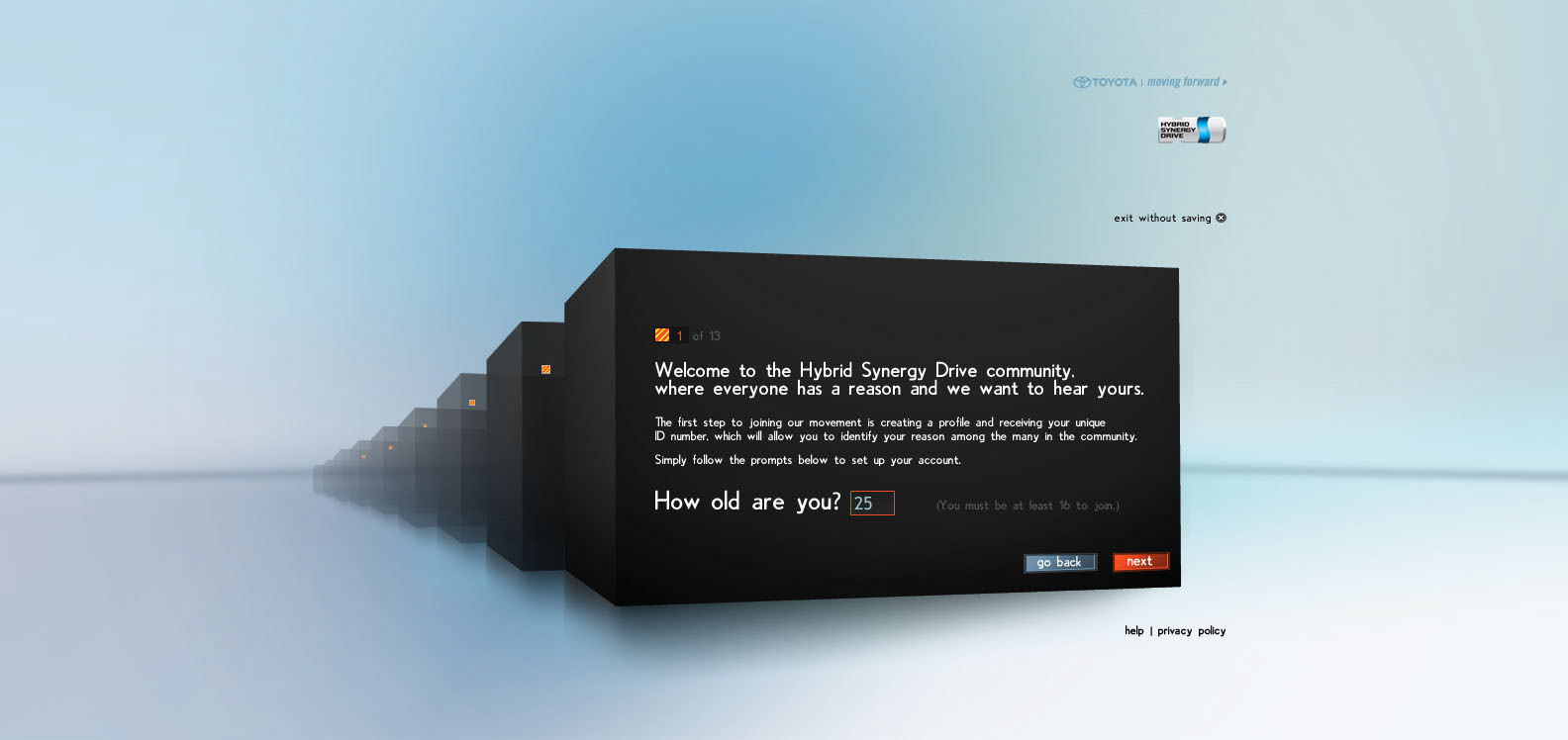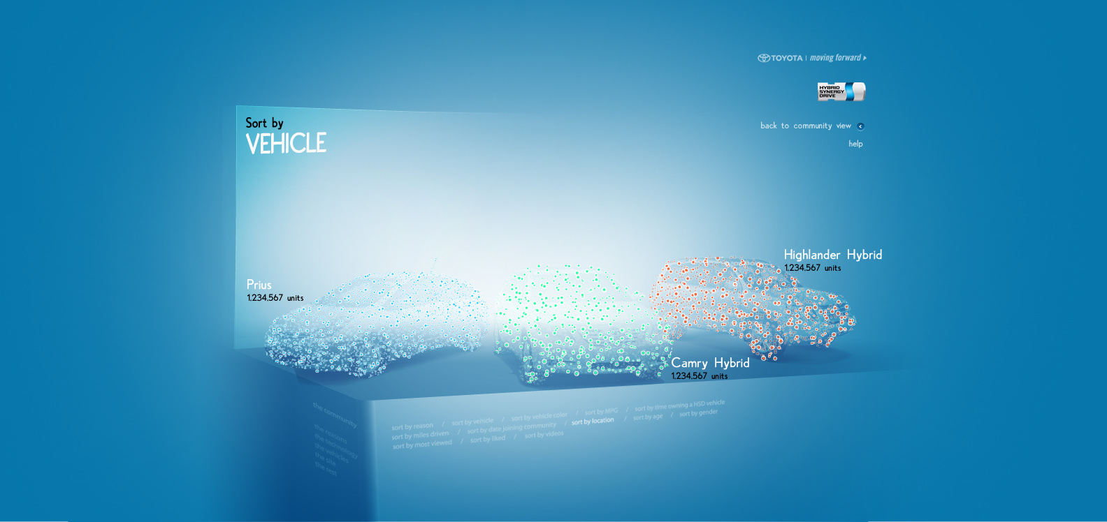 The Toyota.com/hsd 2006 flash microsite for HSD. My Reasons. Design / Art Direction and flash production.